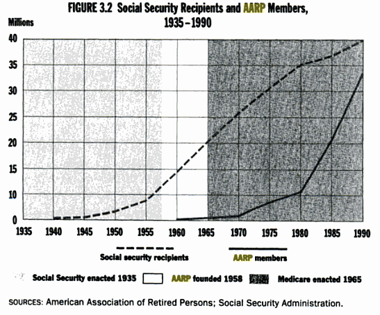 For example, he chronicles the organization of Social Security recipients into the collective action group known as the AARP: