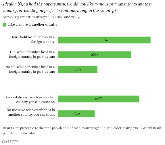 Gallup has released some more research about those 700 million who wish to emigrate. This round focuses on reasons for wanting to leave, again and unfortunately, asking why they would permanently leave, instead of also asking if they would prefer to boomerang in and out.