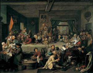 Johnson says this model is in opposition to the conventional wisdom on genius and creativity. The lone brilliant thinker, the solitary iconoclast originating paradigm shifting views, simply does not exist, he says. Hotbeds of innovation should look more like Hogarth’s chaotic coffee house than pictures of lonely Newton and his apple.