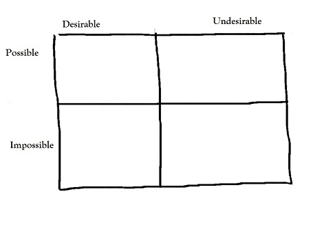 Where do you think most the world fits in this matrix? I’d guess in the impossible and undesirable camp. It would be a great waste of time to argue with them. The real trouble-makers are those who think it’s both possible and undesirable. But even so, these are the last people we want to waste our time reasoning with. If we must engage with them at all, I propose that instead of trying to convince them it’s desirable, we try to convince them it’s impossible. While they live under that illusion, we will build in peace and hatch a plan on how to develop our first customers. Then we’ll snowball out like William Penn before us.